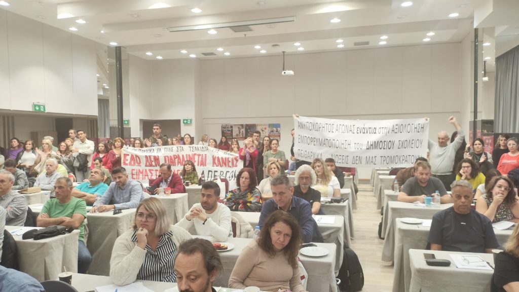 Η καθημερινότητά μας χειροτερεύει με την εντατικοποίηση, τις απειλές, την τρομοκρατία και την αξιολόγηση, την οικονομική εξαθλίωση. Την ίδια στιγμή το πειθαρχικό των απολύσεων είναι έξω από την πόρτα μας, τα σχολεία βράζουν από ελλείψεις εκπαιδευτικών, διάλυση υποδομών, αναθέσεις ωρών και υπερωρίες, συγχωνεύσεις τμημάτων, ματ και χημικά σε παιδιά, γονείς & εκπαιδευτικούς όταν διεκδικούν την άρση τους. Τα παιδιά χωρίς δασκάλους, τα ολοήμερα κλειστά, οι γονείς σε απόγνωση, το σχολικό πρόγραμμα κατακερματισμένο σε (αν)ενεργούς πολίτες, προγράμματα του «φαίνεσθαι» και δράσεις βιτρίνας. H επαγγελματική μας εξουθένωση έχει χτυπήσει κόκκινο ήδη από Οκτώβρη μήνα…